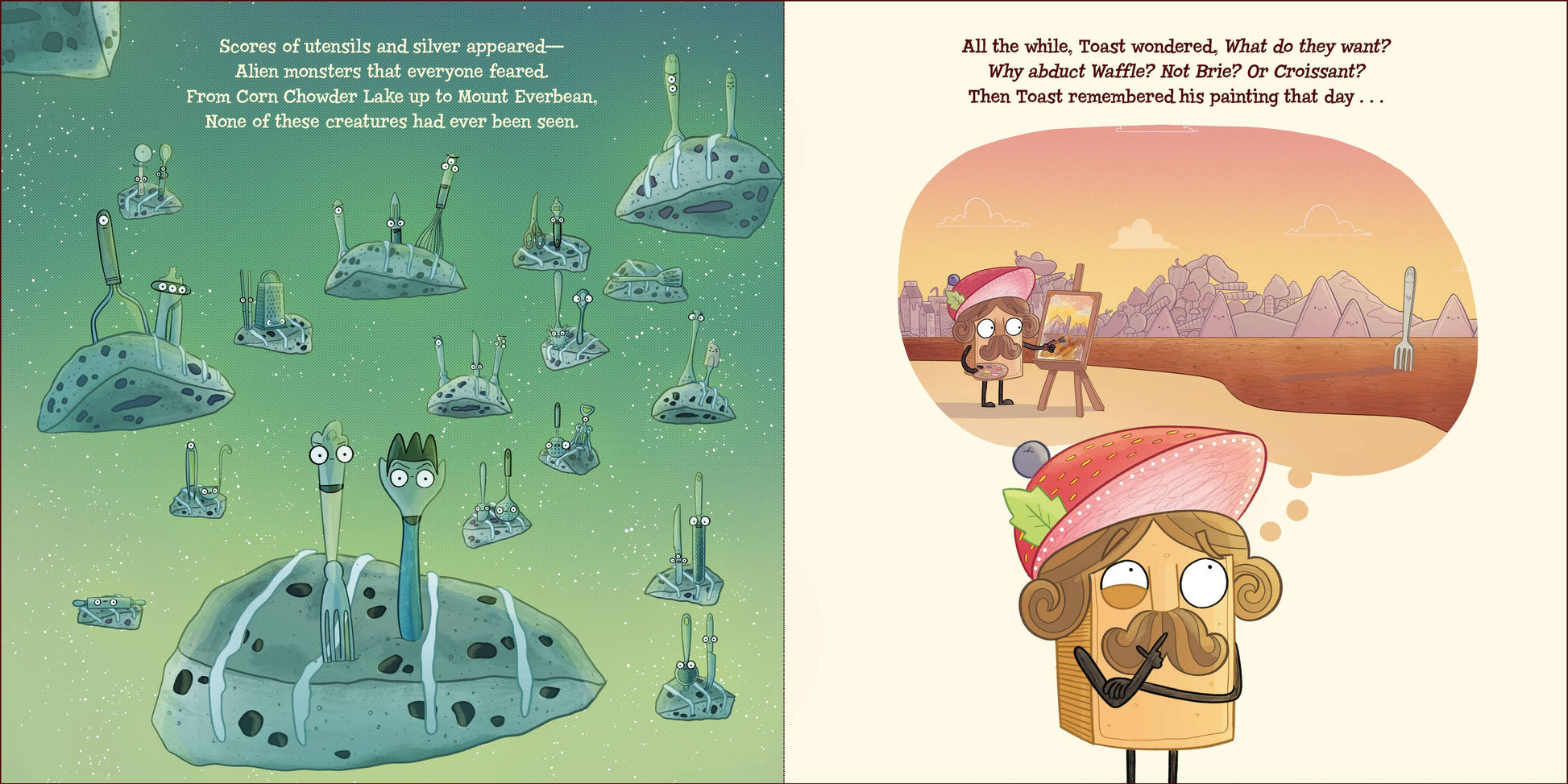 It's just about time for Baron von Waffle's birthday bash when Sir French Toast spots a strange flying object in the sky. He pleads with Lady Pancake to help him uncover the mystery invader, who she doesn't believe exists. But when Baron von Waffle is captured, Pancake and French Toast know they must save their friend. Will they be able to put aside their differences to salvage their friendship and rescue Waffle, or will the invaders take over the fridge forever? Praise for the Lady Pancake and Sir French Toast Series: "[R]eaders will giggle their way through this refrigerated fantasyland."—Publishers Weekly "A must purchase."—School Library Journal, starred review Don't miss the other books in the series: Lady Pancake & Sir French Toast, The Case of the Stinky Stench, Mission Defrostable Short & Sweet, The Great Caper Caper. Hardcover Book with Printed Laminated Cover with Jacket Picture Book; 10 X 10 inches; 40 pages.